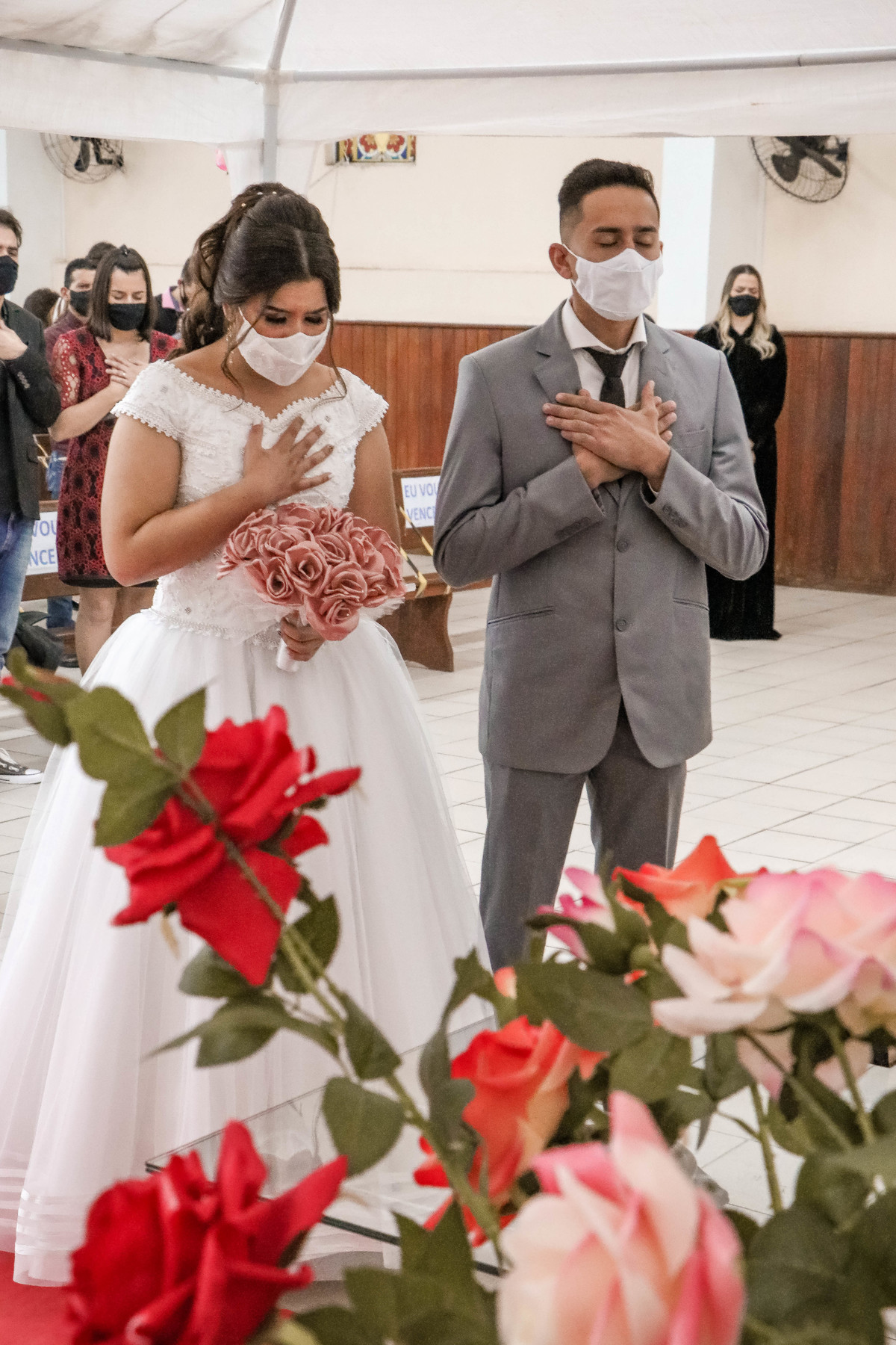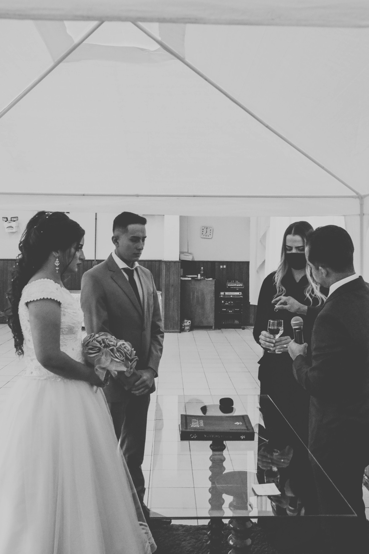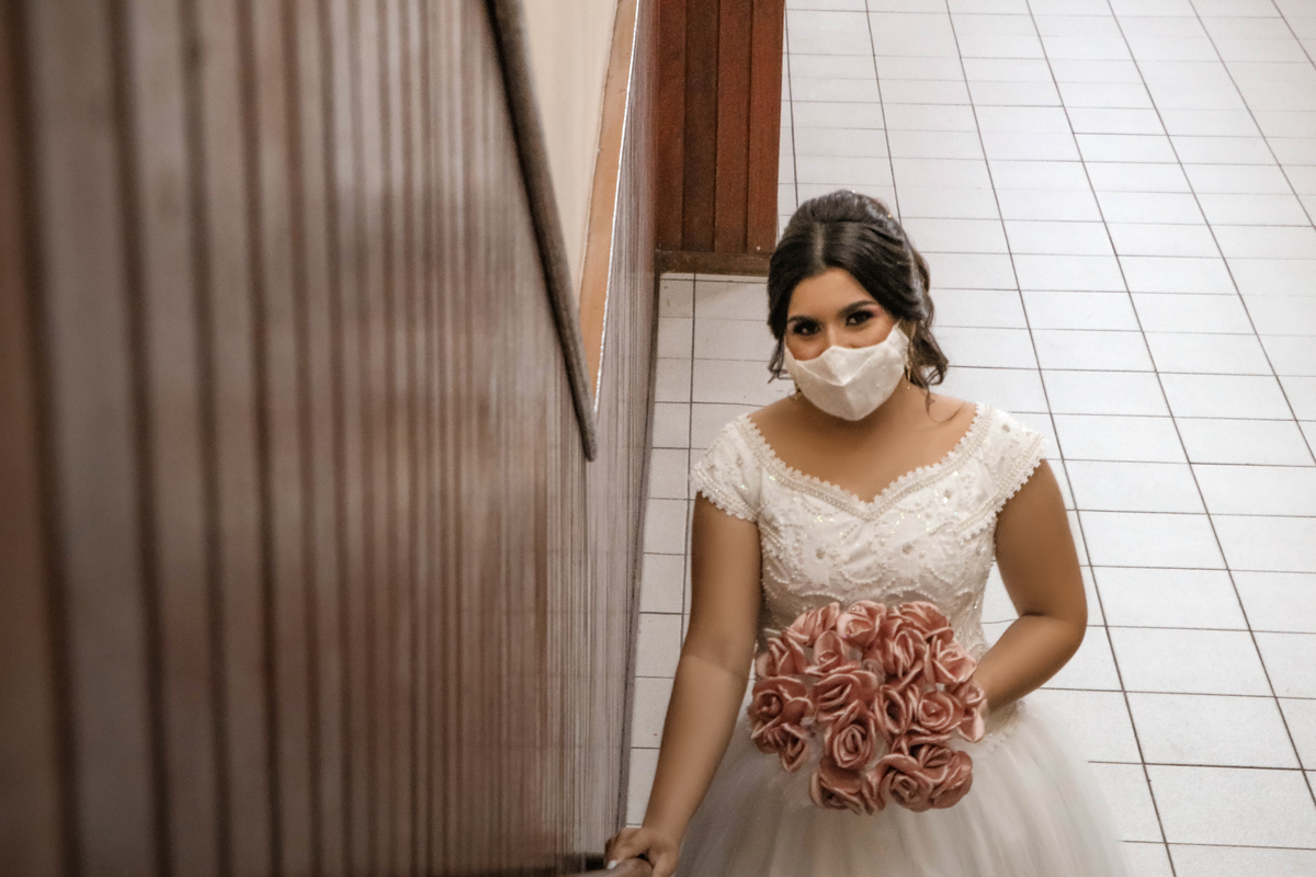Um casamento com limite de convidados reduzido e seguindo todas as regras de higienização de ambiente e orientações de segurança.